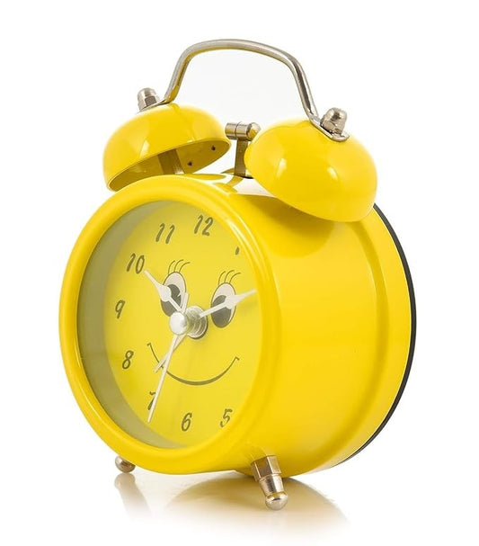 Alusters Smile Analog Table Clock with Alarm, Desk Top|Silent Non Ticking Quartz Movement | Battery Operated for Bedroom, Living Room, Office, Home Decor (Yellow Clock)