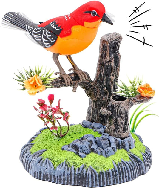 Alusters Realistic Singing & Chirping Bird Toy Battery Operated Bird in Cage with Sensory Touch,Gift for Baby Birthday Educational and Entertaining Toy