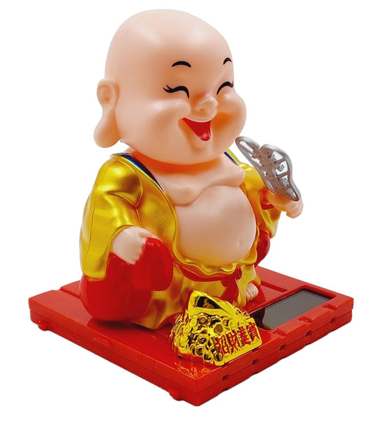 Alusters Solar Powered Sitting Buddha Statue - Shaking Head Buddha Monk Statue for Car Dashboard, Home & Office Desktop, Health Wealth & Prosperity, Peaceful Meditation