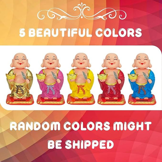 Alusters Cute Laughing Buddha Feng-Shui, Positive Energy, Money Luck & Prosperity Decorative Showpiece Pack of 1-10 cm (Plastic, Gold & Red)