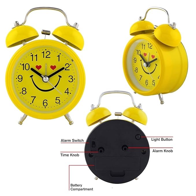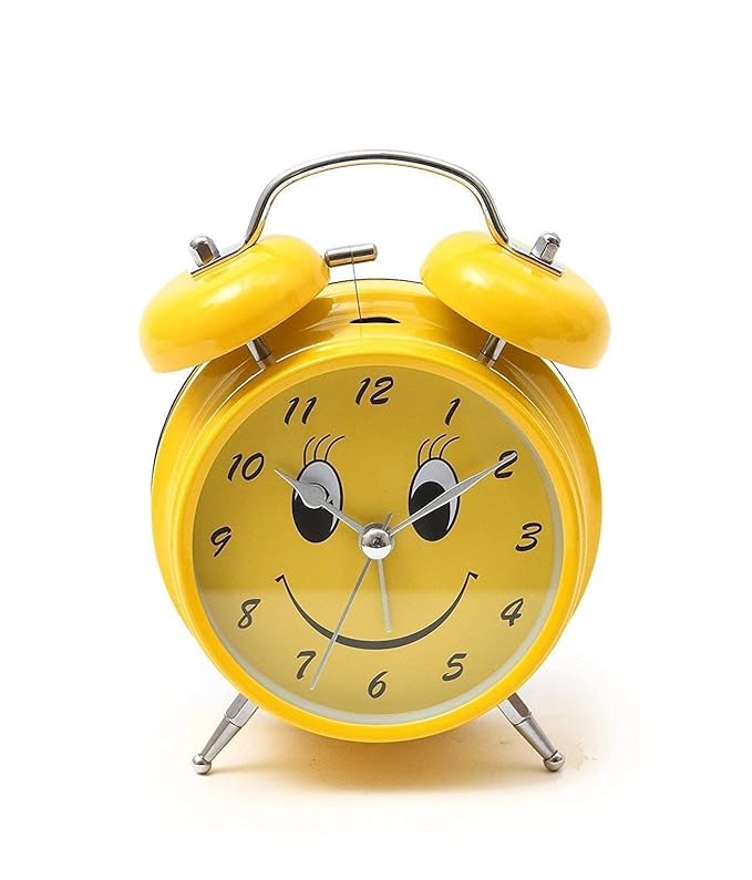 Alusters Smile Analog Table Clock with Alarm, Desk Top|Silent Non Ticking Quartz Movement | Battery Operated for Bedroom, Living Room, Office, Home Decor (Yellow Clock)
